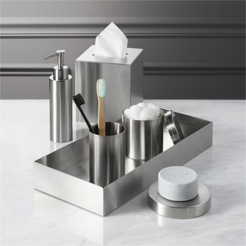 Adding flair to your bathroom is easy with coordinated bathroom accessory collections from american standard. First, straighten up the vanity with sink accessories: Stainless steel designer bathroom accessories set. Whether you have a small space you want to optimize or multiple bathrooms throughout the home, we've got you covered with our extensive line of bathroom accessories. Give your space the spa treatment with modern bathroom accessories.